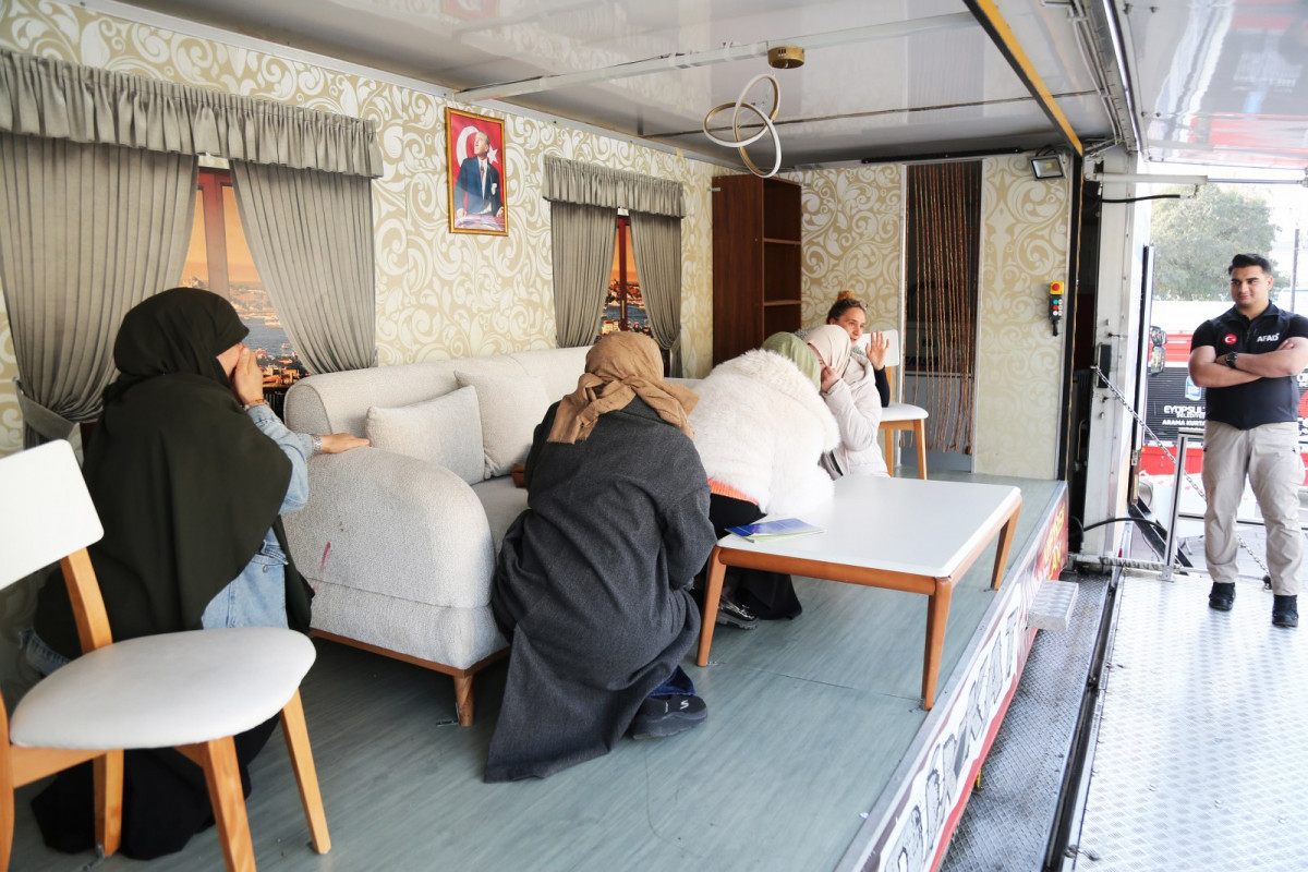 Deprem öncesi, sırası ve sonrasında yapılması gereken doğru davranışları öğretmek ve afet bilincini artırmak amacıyla Eyüpsultan’a gelen simülasyon tırında vatandaşlar, 7.2 şiddetindeki deprem anını gerçekçi bir ortamda birebir deneyimledi.