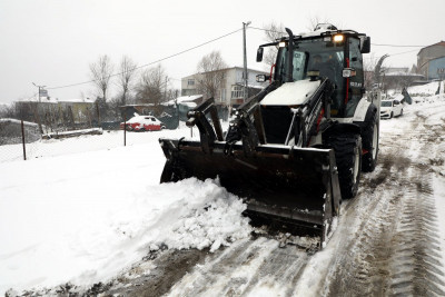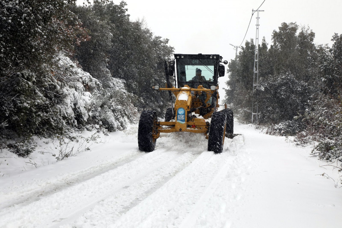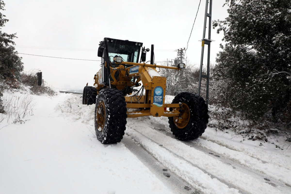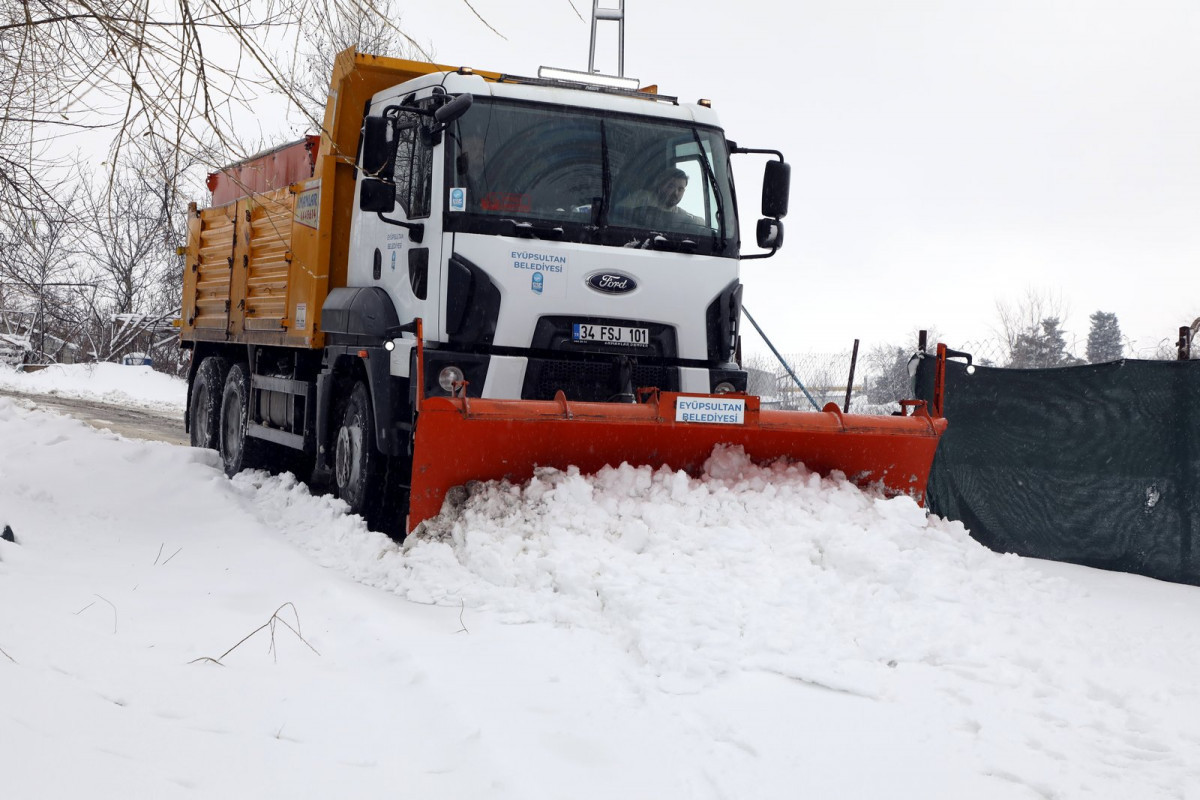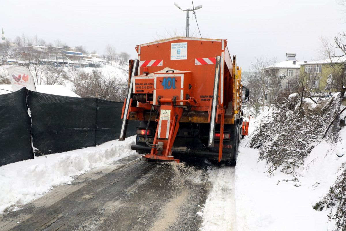 Eyüpsultan Belediyesi karla mücadele ekipleri gece saatlerinde başlayan yoğun kar yağışı ile birlikte ilçe genelinde 29 mahallede 52 araç ve 118 personelle görev aldı.