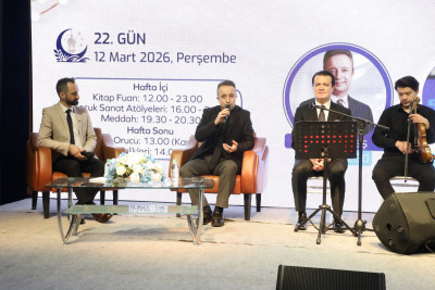 Ramazan etkinlikleri kapsamında etkinlik çadırında her hafta Perşembe günleri düzenlenen “Eyüpsultan’da Huzur” temalı sohbetin moderatörlüğünü Ömer Toraman yaparken, programın konuğu Fatih Savaş oldu.