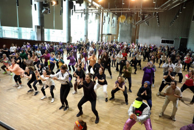 Etkinliğin devam eden bölümünde, uzman eğitmenler eşliğinde zumba yapan, ritimle birleşen ve enerjilerini tazeleyen kadınlar “Birlikte Güçlüyüz!” mesajı verdiler.