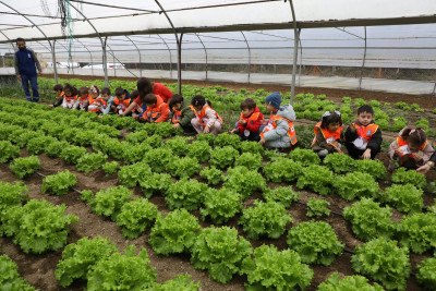 Son olarak düzenlenen etkinlikte öğrenciler Eyüpsultan Belediyesi’nin Odayeri Köyü’nde bulunan seralarında marul ektiler, dalından mandalina topladılar.