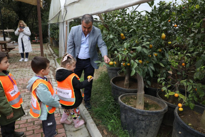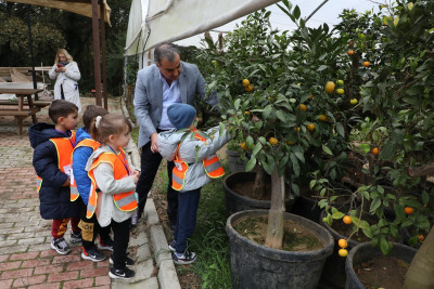Sonrasında başka bir seraya geçen öğrencilere mandalina ağaçları gösterildi. Öğrenciler burada da dalından mandalina topladılar. Ardından da kendi elleriyle topladıkları mandalinaları yediler.